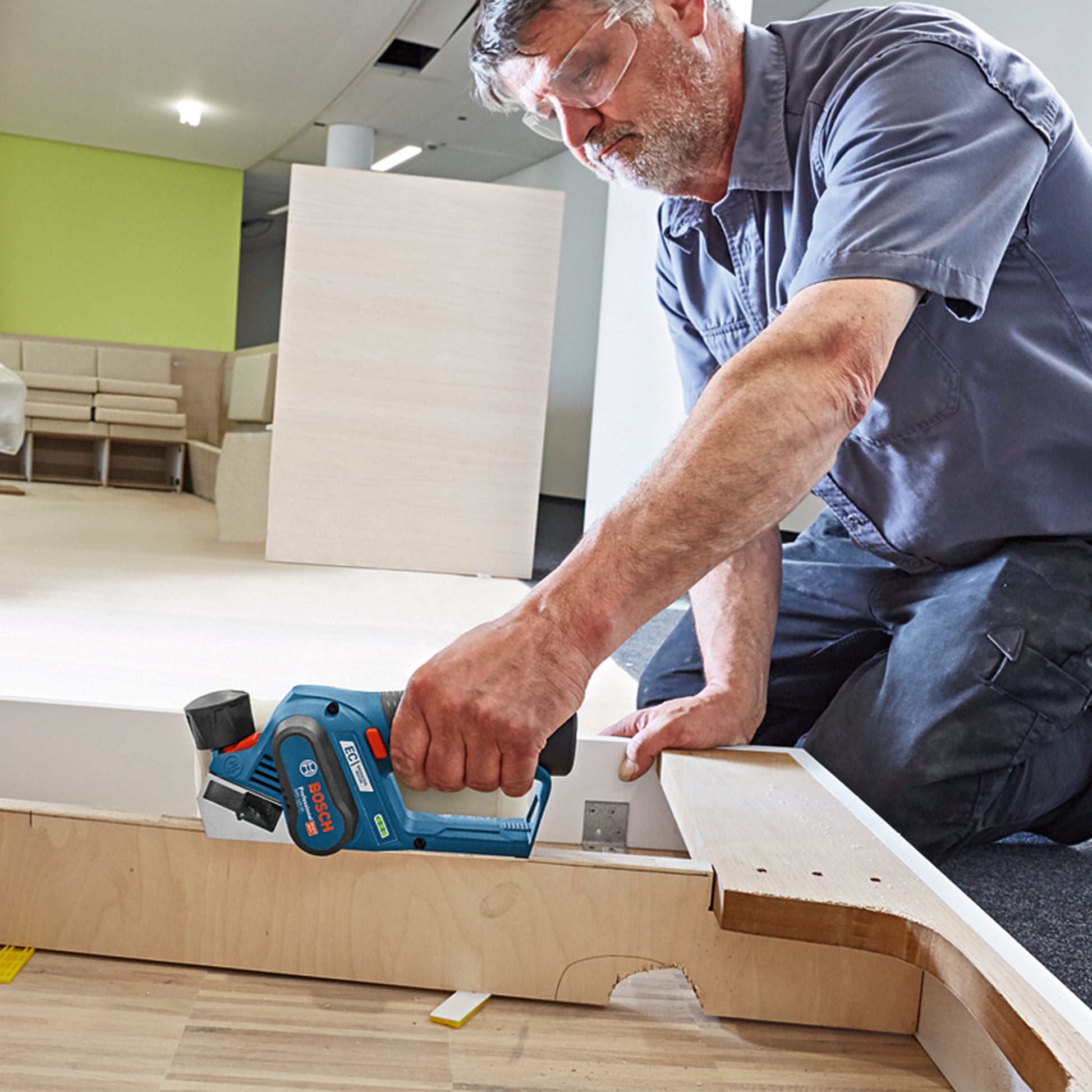 Regruesadora compacta y potente con motor brushless de 12 V, ideal para trabajar madera en espacios reducidos. Equilibrio optimizado y diseño ergonómico para un manejo confortable en cualquier posición de trabajo. Compatible con todas las baterías y cargadores Bosch 12 V Professional